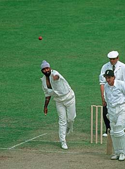 2nd Test England v India at Lord's 1979 Bishen Bedi bowling, Derek Randall backing up and Dickie Bird (umpire) E792100